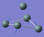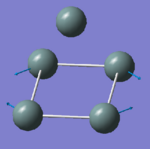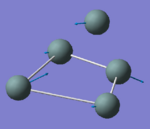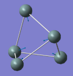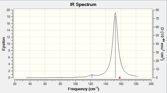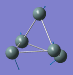 Both tetragonal pyramidal and trigonal bipyramidal structures of Sn5 employ highly symmetrical structure of C4v and D3h. As such, most of their vibrational modes are invisible due to dipole moments cancel out each other in vibrations and therefore only few modes are IR active. For tetragonal pyramidal IR spectrum, 4 vibrational modes and 3 peaks were observed at 108.03cm-1, doubly degenerate peak at 132.26cm-1 and singly degenerate peak at 146.68 cm-1. Whereas for trigonal bipyramidal IR spectrum , only 1 distinct vibrational mode was observed at 152.77cm-1.