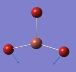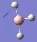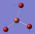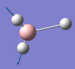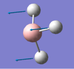 | 2737.44 | 103.7333 | E' | Symmetric stretch for 2 of the H atoms and this is antisymmetric to the larger stretching of the 3rd H atom in the σh plane | |