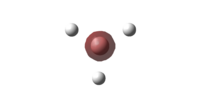 The boron centre is sp2 hybridised and bonded to 3 hydrogen atoms. It adopts a trigonal planar structure with an empty p orbital perpendicular to the plane. Simple borane is a very reactive molecule and hence it usually exists as a dimer, B2H6. In the subsequent calculations, it is assumed that the BH3 molecule exist and its dimer form will not be taken into account.