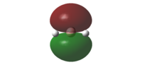 | -0.07455 | The LUMO is the non-bonding pz orbital in boron atom. The picture of simulated MO is rotated for better vision of MO and both methods predict the same orbital shape. | ||