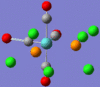 The calculated and literature frequencies are close and fit within the experimental error of 10%. This is a shortcoming with the method used. The metal-carbonyl bond is very complex and many different factors can affect the π-backbonding and therefore the strength of the bond. Looking at the molecule being studied, the electronegative trichloro phosphine groups will reduce the electron density on the metal available for back-donation to the carbonyl π*-orbital. This would increase the strength of the carbon-oxygen bond and will be most prominant for carbonyls trans to the phosphine. For this reason, Gaussian under-estimates the strength of the cis-complex carbonyl vibrations. The calculation also assumes harmonic oscillations when in reality the vibrations are anharmonic.