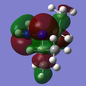 Looking at the MO diagrams it can be see that the lone pair-lone pair interactions in Conformation 1 are no longer as significant and cannot be seen as clearly in the diagram. However the increasing steric strain in the substituents will push them further apart and closer to the hydrogen atoms of the opposing nitrogen atom and this will destabilise the anti conformation. This will become more apparent with larger substituents.