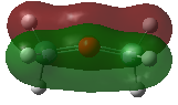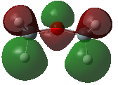 The MO's predicted in the molecular orbital diagram of BH3 are very good approximations to those produced from quantum mechanical calculations. They correlate well both in shape and in relative energies. The shapes of the calculated MO's are more well defined than the LCAO method, but with a little chemical intuition they can be invisaged based on the representations produced in this way. The 1a'1 molecular orbital (HOMO -2) is essentially the 1s orbital of the boron atom, as this is far too low in energy to interact significantly with the hydrogen atomic orbitals. The 1e' (HOMO) and 2a'1 (HOMO-1) molecular orbitals provide are bonding orbitals; providing a total of 6 bonding electrons. The Pz atomic orbital does not have the correct symmetry to interact with the hydrogen atomic orbitals. The 1a"2 (LUMO) has an energy very close to 0 hartree, This correlates well with the prediction of non-bonding character. The shape of this orbital suggests that it has essentially Pz character. The relative energies and shapes of the higher energy orbitals are in excellent agreement with those predicted by the LCAO approach.