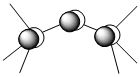 The optimised geometry of borane is shown above. This suggests that BH3 has D3h symmetry. The optimised geometry has a planar arrangement with all BH bond lengths of 1.19 Å, bond angles of 120° and a total energy of -26.462 au. The optimisation procedure works by simulating the molecule and solving the Schrödinger equation for the electrons using the B3LYP/3-21G approximation. The nuclear coordinates are then adjusted until the energy reaches a minima. This is determined by the RMS gradient which is zero at the minimum energy. The success of the optimisation was confirmed by checking the RMS gradient reported in the output file. Any gradient less than 0.01 au corresponds to a fully optimised geometry. The RMS gradient resulting from this calculation is 0.0002 au, therefore the geometry has been optimised correctly. This was further verified by checking the output file to verify that the force and displacement converged.