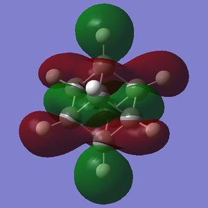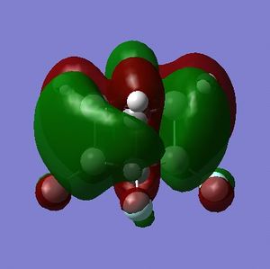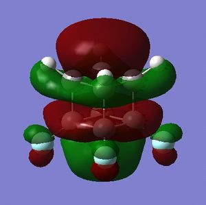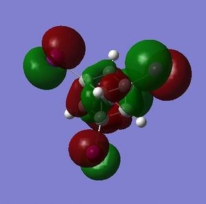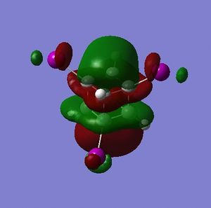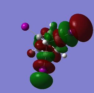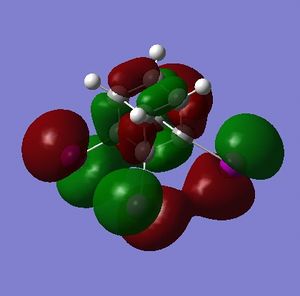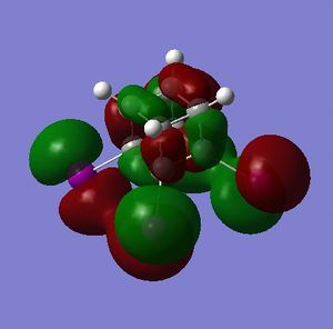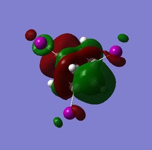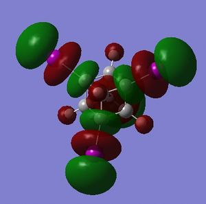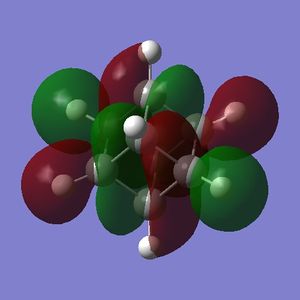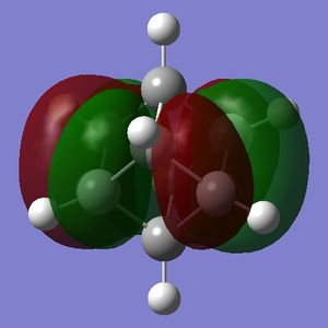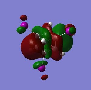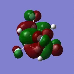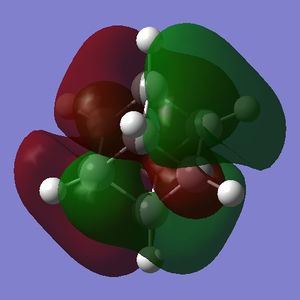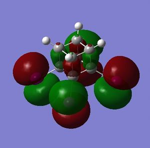 - the LUMO has large lobes either side of the carbon atoms that indicates that they are available for receiving electron density; the kinetics of any reaction would require that the electrostatic repulsion between the carbon and any attacking nucleophile be overcome. While the shape of the MO seems to indicate that nucleophilic attack is possible, in practice this may not occur due to incorrect symmetry, poor MO energy compatability or any number of kinetic considerations.