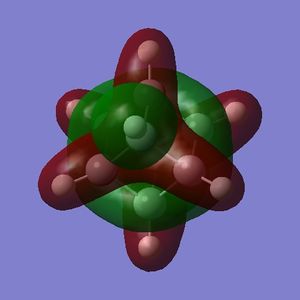 The post-optimization bond lengths were 1.570 Å and 1.092 Å for C-C and C-H respectively (to 3 d.p.). There was minor variation between the individual bonds lengths but the differences, though ruled out by symmetry, were ignored because of their size. Had the point group been forcibly applied before the optimization it might have unified the bond lengths. It is interesting to note that the C-C bond length is only a little above average (1.54 Å[3]); this could be a result of reduced hybridization energy required to make the carbons atoms sp3 hybridized (see Part 1.3). Less energy expended in hybridizing the parent orbitals will lead to an overall strengthening of the final bonds.