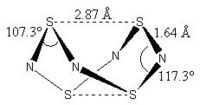 While the S-N bond length changed only slightly from 1.64 Å in S4N4 to 1.66 Å in S4N4.(C7H8)2, indicating some multiple-bond character, the bond angles are larger at 117.4° for the non-planar S-N-S bond and 128.2° for the planar S-N-S bond respectively as compared to the 107.3° and 117.3° in S4N4.