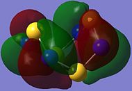 For the S4N4 ring, the S-N bond lengths calculated by Gaussian[1] are all about 1.66 Å, while those measured by Griffin et al[30] range from 1.59 to 1.65 Å. The S-C bonds in Gaussian[1], at 1.90 Å, are also longer than those measured experimentally[30], from 1.83 to 1.85 Å.