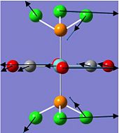 Note: The length of the vibrational arrows indicate the relative direction and amplitude of molecular vibrations at a single point of time, vibrations in the opposite direction also occur.