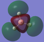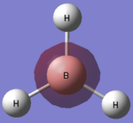 A molecule of borane is constructed in GuassView 5.0. The bond lengths between the boron and the hydrogen atoms are lengthened to 1.5Â. The molecule is then optimised using the B3LYP method and a 3-21G basis set.