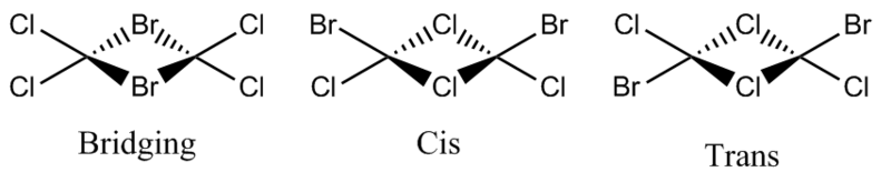 The bridging isomers seem to have different structures to the cis and trans isomers. However the visual difference in the structure is due to the difference in the size of the bromine and chloride orbitals.