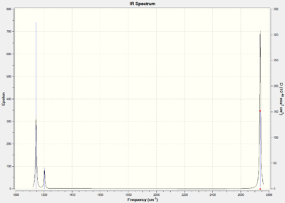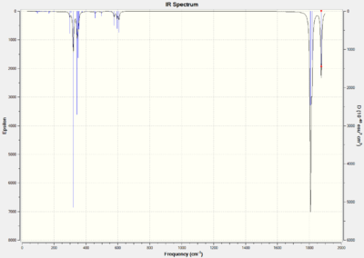 Three stretches are observed on the infrared spectrum. These stretches are visible because the change the dipole moment of the molecule. By comparing all the stretches calculated with the literature it can be observed that the values are accurate.