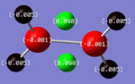 Firstly the symmetrical nature of the bridging and trans isomers can be seen from the diagrams. These isomers have no dipole across the whole molecule and this can be seen by viewing the charge distribution. The uneven charge distribution of the cis isomer can be seen with the dipole moving from the bottom to the top of the image.