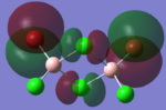 By looking at the molecular orbitals chosen as a whole the similarities between the cis and trans isomers can be seen. This is expected because they have similar properties so there orbital arrangement and properties would be expected to be similar. The cis and trans isomers are only different because terminal bromine atoms are in different places, however this difference does not effect the bonding between the two BClBr fragments with the Cl2 central fragment.