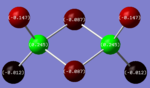 The charges present on each atom in the structure can be seen in each image. Diborane is shown in the table to allow the values to be compared to a standard.