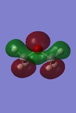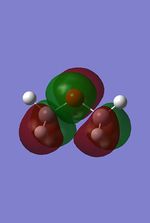 Furthermore, gaussian was also used to calculate and solve the electronic structure and generate the MO's of the molecule. The calculated MO's are correlated to their corresponding LCAO. A major observation is the swapping of the 2e' and the 3a"1 orbitals in the MO diagram. This suggests that these molecular orbitals are able to swap positions with relative ease. The values located on the bottom left of each MO are the corresponding calculated energies. The calculated MO's agree with those predicted by the LCAO and show a more de-localised picture by combining bonding and anti bonding character. For example for the 2a'1 orbital there is a completely bonding molecular orbital that spans the whole molecule. A lower energy non bonding orbital can also be seen corresponding to the Boron 1s orbital which is to low in energy to interact with Hydrogen. For the antibonding orbitals we can directly see an increase in the number of nodes. Furthermore, for the 3a'1 orbital we would expect to see less electron density on the more electronegative hydrogen. However, this is not what we see in the computed molecular orbital, suggesting a possible limitation of the calculation. Overall, the calculated MO's agree with the LCAO making this technique rather useful and accurate in predicting MO's.