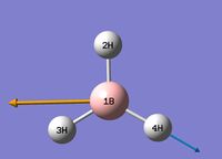 The first 3 low frequencies are negative, which would suggest the presence of a transition state. However, due to the relatively simply structure of BH3, it is unlikely that a transition state is present as only bond lengths have been changed. Furthermore, the 6 low frequencies are related to the 3 translational and 3 rotational non vibrational degrees of freedom. Thus, a molecule has 3N-6 vibrational frequencies. the remaining frequencies correspond to the stretch and bending modes of the molecule which are summarized below.