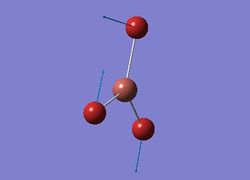 The BH3 molecule was optimized on gaussview using the Gaussian DFT B3LYP method and the 3-21G basis set, a . The Starting BH3 molecule was drawn with an arbitrary bond length of 1.5A in order to minimize computational time. The file summary for this is shown below.