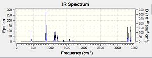 The results showed a minimum obtained since no negative frequencies were found. Moreover, we found proof in the .log file that our calculation had converged successfully. The results from the frequency analysis also give a list of energies which are tabulated in the table below. A computed IR spectrum obtained is also shown.