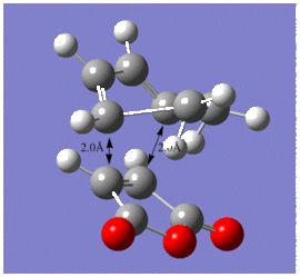 The optimised geometry of the transition struture is shown below, including the bond lengths of the partly formed σC-C bonds;