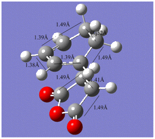 In this section, the transition structures for the Diels-Alder reactions between ethylene and cis-butadiene which is a prototypical reaction, and between that of cyclohexa-1,3-diene and maleic anhydride, where both reactants carry substituents were characterised by the frozen coordinate method, followed by examining the molecular orbitals. For all the calculations the AM1 semi-empirical molecular orbital was used.