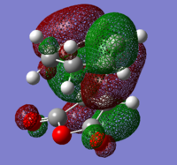 A DFT optimisation at the B3LYP/6-31G(d) level of theory was then performed on the HF/3-21G TS Berny optimised structure. As mentioned earlier, DFT differs from ab initio methods such as HF by including electron correlation - in layman's terms this means that it takes into account the fact that electrons in a molecular system react to each other's motion and try to avoid each other. HF calculations consider that each electron only reacts to an averaged electron density - this fails to account for the instantaneous interactions of pairs of electrons with opposite spin. But DFT can do this, because rather than calculating a wavefunction, it derives the electron distribution (or electron density function) directly. A functional is a function of another function, so this explains the name. The results of this optimisation are given in Fig. XXX.