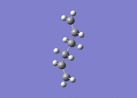 Recent literature [6] has cited HF as being too inadequate an approach for proper analysis of 1,5 hexadiene because unlike DFT Hartree-Fock does not take electron correlation into account. It therefore treats 1,5-hexadiene like n-butane, for which the energy difference between the anti and gauche confomers are an order of magnitude higher than the corresponding difference in 1,5-hexadiene. A better way to determine the true relative stability would be to use a so-called 'post-Hartree-Fock' ab initio approach, such as a Coupled Cluster CCSD(T) calculation, which accounts for electron correlation by constructing multi-electron wavefunctions using an exponential cluster operator. Alternatively, the small energy differences between the anti and gauche conformers could be included in molecular mechanics parameterisations to to facilitate an accurate calculation via this method[6] To gain more accurate results, re-optimisation was then performed using a DFT approach, with a B3LYP functional and a 6-31G(d) basis set.The anti2 and gauche3 conformers had the lowest energy using HF - how would they fare when electron correlation is taken into account? Summaries of the results are given in Figs XXX, XXX and XXX.