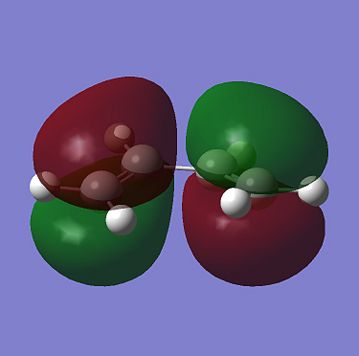 For a Diels Alder Cycloaddition reaction to occur, the phase of the interacting orbital lobes must be the same and there must also be good orbital overlap between the pi-orbitals of the 2 reactants. In order to have this to happen, the symmetry of the HOMO and LUMO on the two reactants must be the same with respect to the plane run down the molecule. Computational method could be used to find the shape tand the symmetry of the molecular orbitals of molecules. The HOMO and the LUMO for Cis-butadiene and Ethene are shown below: