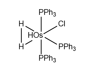 The H-H bond length is greater in the metal complex than in H-H gas since electron density is donated from the hydrogen atoms to the Osmium atom in the metal complex. This lowers the bond order of the H-H bond, which increases the H-H bond length in the metal complex.