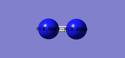 The N-N bond length = 1.10550 Angstroms with a bond angle of 180° as the molecule is linear.