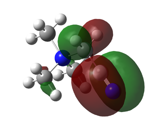 Interestingly the addition of the -CN group has also raised the energy of the HOMO but the LUMO has been reduced in energy and the gap between the HOMO-LUMO is also smaller. This will result in [N(CH3)3CN]+ being more reactive.