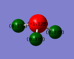 The charge distribution in methanol can again be explained using the different electronegativities of the atoms. Oxygen, being the most electronegative atom among the three atoms, will bear the most negative charge. The H bonded to O will therefore have the most positive charge as well, since O is drawing the charge density towards itself in the O-H bond. C also bears a small negative charge even though it is bonded to O. This is because it is also bonded to 3 other H atoms, which are less electronegative than C and hence would bear a positive charge while C would bear a negative charge.