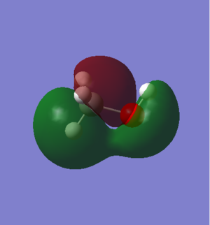 MO9, E = -0.26493 au This is a non-bonding HOMO, associated with the lone pair of oxygen. It resembles MO8 as there are two lone pairs of electrons in oxygen.