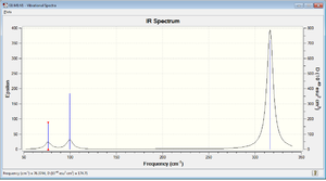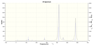 This includes all vibration's above 420 cm-1. Vibrational modes 16 and 17 are 'symmetric' for a fully symmetric molecule. Therefore, I will refer to these two vibrational modes as the 'symmetric' stretches.