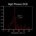 CaO has the same crystal structure as MgO, being a face-centered cubic lattice, with two atoms in the primitive cell. As a result, CaO shares the same space group as MgO, Fm3m, which indicates that the two oxides have the same number of phonon "types" to represent each vibrational mode's excitation. The result of increased grid size is manifested on the DOS curve, as more frequencies can be sampled to illustrate a more comprehensive collection of bands (the difference in energies between certain excitation). Given that the expected vibrational modes are similar for the two lattices, there is no value in increasing the grid size further as it will cost CPU resources. The difference between the two lattices is shown instead on the dispersion curve, where the frequencies of CaO is lower than that of MgO due to an increased in reduced mass and decreased force constant.