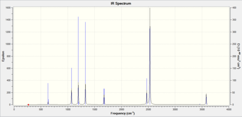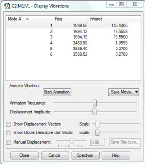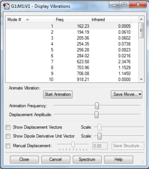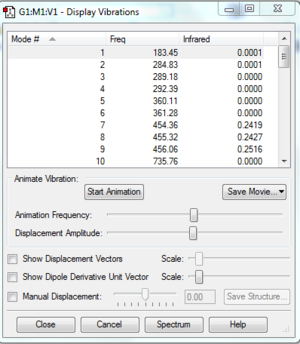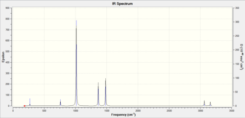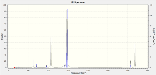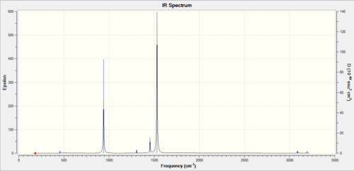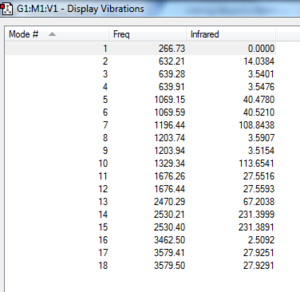 The Low frequency line gives us the proof we needed of correct optimisation, with them being close to zero and orders of magnitude lower than the the real frequencies (12.2824 to 1231.1880). The closer the low frequencies are to zero the more accurate the calculation. The stationary point has been found now a look at the vibrations of the molecule.