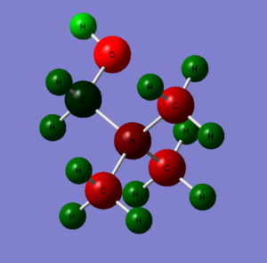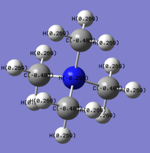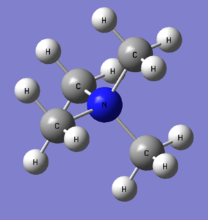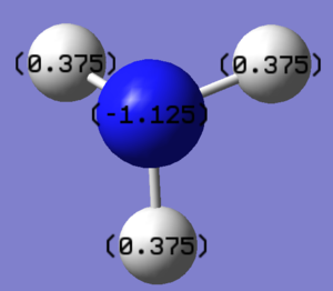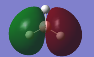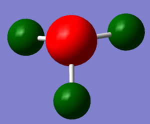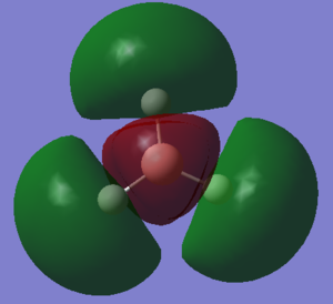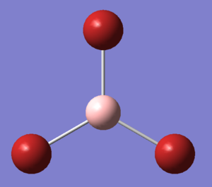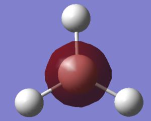 Using GaussView 5.0 a BH3 was created, the bond lengths were then adjusted to 1.5 angstrom. Optimisation of the molecule was preformed using "Gaussian calculation setup," with Job Type as optimisation, B3LYP as the method and finally 3-21G as the basis set. The optimisation of BH3 gives us the lowest energy positions of all four of the nuclei in the molecule, the method tells the program what approximations that are being used when solving the Schrodinger equation and the basis set determines the accuracy (3-21G basis set has very low accuracy but it allows fast computation of the results).