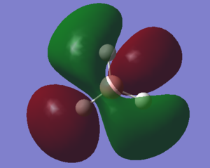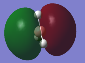 With the above calculations leading to an optimised BH3 molecule it also allows us to visualise molecular orbitals using the .chk file, this file was submitted to SCAN and job type changed to energy, keywords pop=full and NBO turned fully on. The D-space file and the .chk file shown below.
