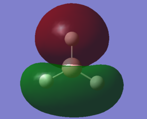 In this experiment run, the heavy bromide atoms requires a pseudo-potential as the Schrodinger equation can not deal with these heavy atoms. The pseudo-potential allows the core of heavy atom to be modeled, the boron atom can be calculated with a normal basis set. Using the 6-31G(d,p) BH3 optimised log file, the hydrogens are changed to bromine atoms in calulation setup the method is changed to GEN with additional keyword of "pseudo=read gfinput. This allows the pseudo potential for each individual atom to be set, with boron using 6-31G(d,p) and the bromine using LanL2DZ (this is done by going into the file and editing it manually) the job is than submitted to SCAN, files shown below.