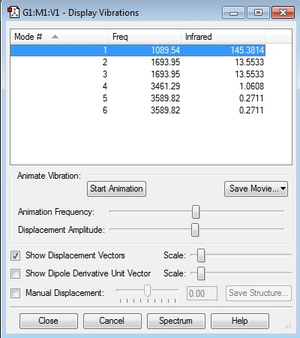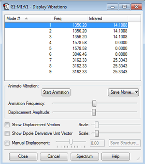 Modes 1, 2, 3, 4 & 5 are bending vibrations and modes 6, 7, 8 & 9 are bond stretch vibrations.