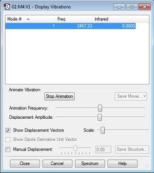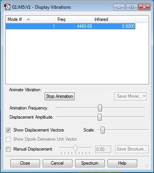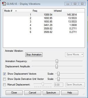 The following printscreen shows the display vibrations for the NH3 molecule:
