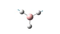 By assuming a given bond distance of 1.5A between the B and H nuclei, it was possible to solve the Schrodinger equation for the electrons finding the optimal bond lengths and bond angles for the BH3 molecule, using gaussview programming[1]. With results and constraints shown below.