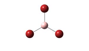 The optimised B-Br bond distance obtained from these calculations is 1.95A and the optimal Br-B-Br bond angle is 120o.