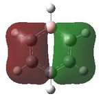 As with the other orbitals, the benzene and pyridinium show the moset similarities, with the only observable difference being that of the orbital over the hydrogen connected to the nitrogen, this orbital is smaller than that seen in benzene, due to the electronegative nature of nitrogen, the opposite can be seen in boratabenzene due to the electropositive nature of boron compared to carbon.