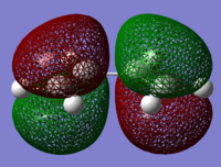 The Woodward–Hoffmann rules can also be extended to explain bimolecular cycloaddition reactions.[12] The rules state that there must be a conservation of orbital symmetry between reactants and products. Using these rules, the prototype Diels-Alder reaction investigated can be classified as a thermally allowed 4n + 2 electron cycloaddition proceeding suprafacially, with phases of the orbital lobes of the cis-butadiene HOMO and the ethylene LUMO correlating, due to both being anti-symmetric, therefore this reaction is Woodward-Hoffmann allowed.