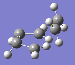 A typical C-C bond length for sp3 hybrididised carbon atoms in the -CH2-CH2- functionality is 1.524 Å.[6] A typical C-C bond length for sp2 hybrididised carbon atoms in the -CH=CH- functionality is 1.478 Å.[6] The Van der Waals radius of a carbon atom has been reported as 1.70 Å.[7] The bond lengths obtained for the transition state appear to be significantly greater than the expected C-C radii for sp3 or sp2 hybridised C-C bonds, but within 2 x the Van der Walls radius (2 x 1.70 = 3.40 Å). This suggests there is interaction between the atoms in the transition state which is expected.