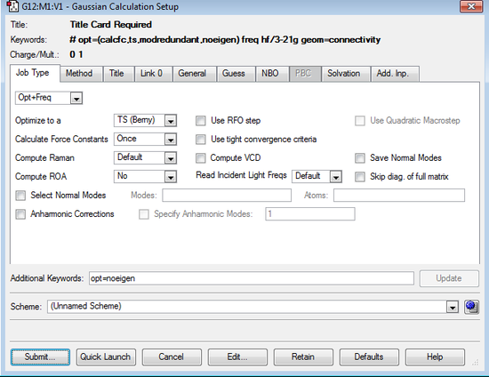 - A QST calculation using Opt + Freq and TS (Berny) was attempted. This calculation failed.