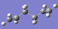 Similarly, to give a more varied and representative view of the structures, two minima were found. The initial structure was first one was found by changing the central dihedral from 180 to 60. Optimizing such structure yielded gauche2, and cleaning before optimization gauche4. The lowest energy conformer, as per experimental script, gauche3 was not found. To locate it, the gauche 2 from ca -123 to 150 degrees. The global minimum was then successful reached in the optimization.