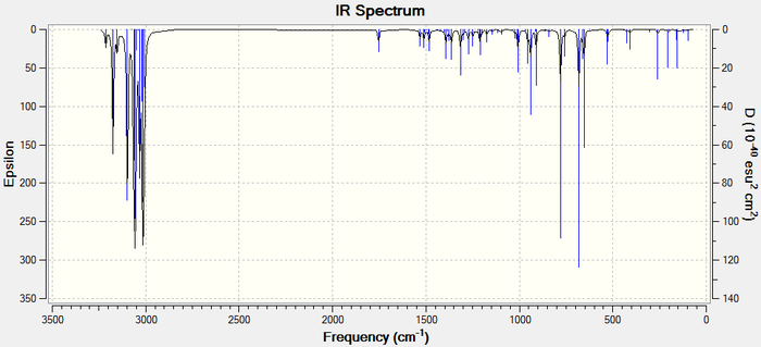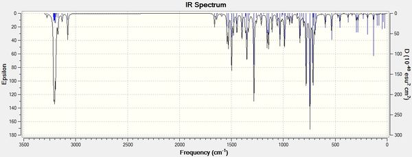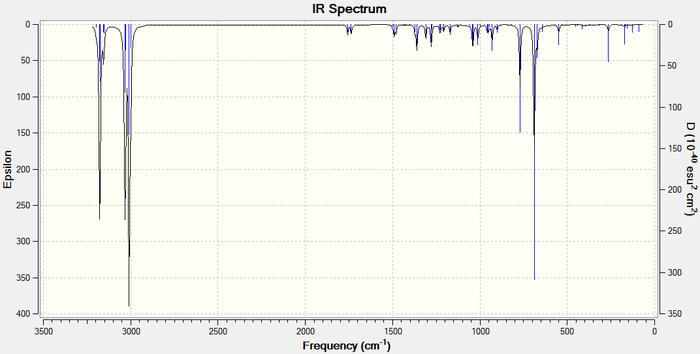 This will create a .log file that can be opened in Gaussview5. In Gaussview 5, an IR spectrum can then be viewed. The spectra for isomers A and B are shown below: