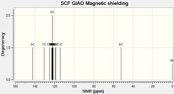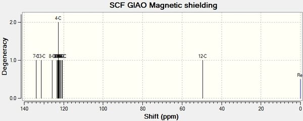 will create a .log file that can be opened in Gaussview5. In Gaussview 5, a NMR spectrum can then be viewed. The spectra are shown below: